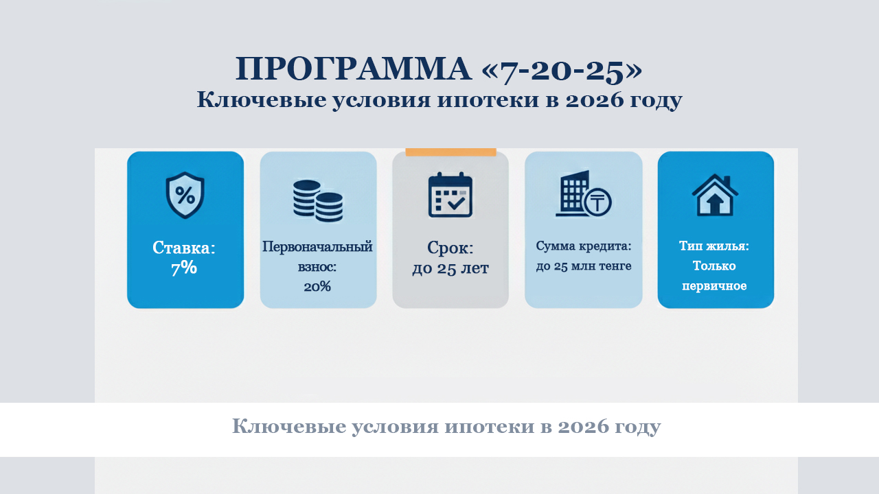 7-20-25 | 7% | от 20% | 25 млн тенге | Все граждане РК без жилья |